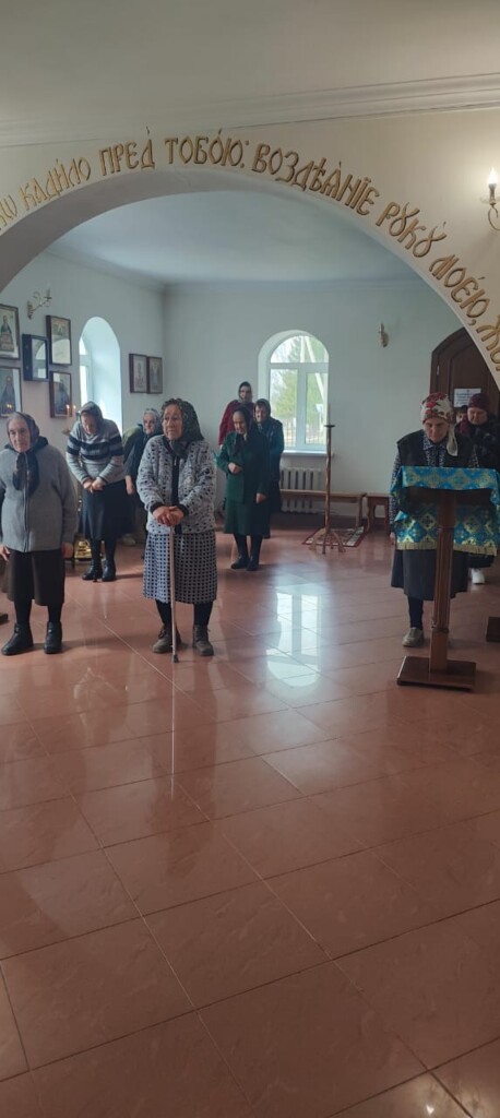В канун праздника Благовещения Пресвятой Богородицы настоятель храма, иерей Роман Жирнов, совершил всенощное бдение. На вечерне была совершена лития с освящением хлебов, пшеницы, вина и елея. На утрене, по прочтении Евангелия, священник помазал молящихся освященным елеем. По окончании богослужения настоятель поблагодарил присутствующих за молитву и обратился к ним со словом назидания.