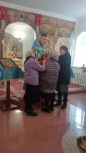 В праздник Покрова Пресвятой Владычицы нашей Богородицы и Приснодевы Марии настоятель храма, иерей Роман Жирнов, совершил Божественную литургию. По заамвонной молитве было совершено славление праздника. По окончании богослужения священник поздравил молящихся с праздником и обратился к ним со словом проповеди.